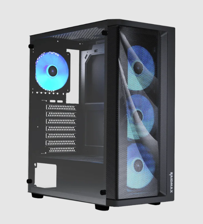 El Raidmax Meshian X922 es un gabinete de torre media (Mid-Tower) diseñado para un flujo de aire optimizado, destacando por su panel frontal de malla (mesh) con diseño de «garras» y su panel lateral de vidrio templado.