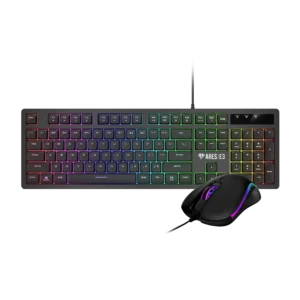 El ARES E3 cuenta con un teclado estéticamente agradable con duraderos interruptores de membrana de perfil bajo. Perfectamente emparejado con un mouse ergonómico de 3600 DPI, esta combinación meticulosamente elaborada satisface las diversas necesidades de los jugadores, proporcionando una ventaja competitiva sobre sus oponentes.