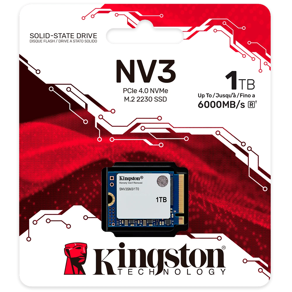 El Kingston NV3 NVMe PCIe 4.0 SSD (1TB) en su formato compacto M.2 2230 es una unidad de almacenamiento de alto rendimiento diseñada específicamente para dispositivos de factor de forma pequeño, como la Steam Deck, ASUS ROG Ally o laptops ultradelgadas.