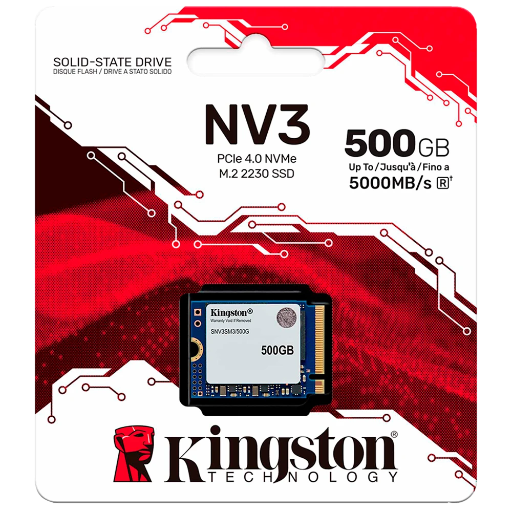 El Kingston NV3 PCIe 4.0 NVMe SSD (500GB) en su formato compacto M.2 2230 es una solución de almacenamiento de alto rendimiento diseñada específicamente para dispositivos de factor de forma pequeño, como la Steam Deck, ASUS ROG Ally y portátiles ultradelgados.