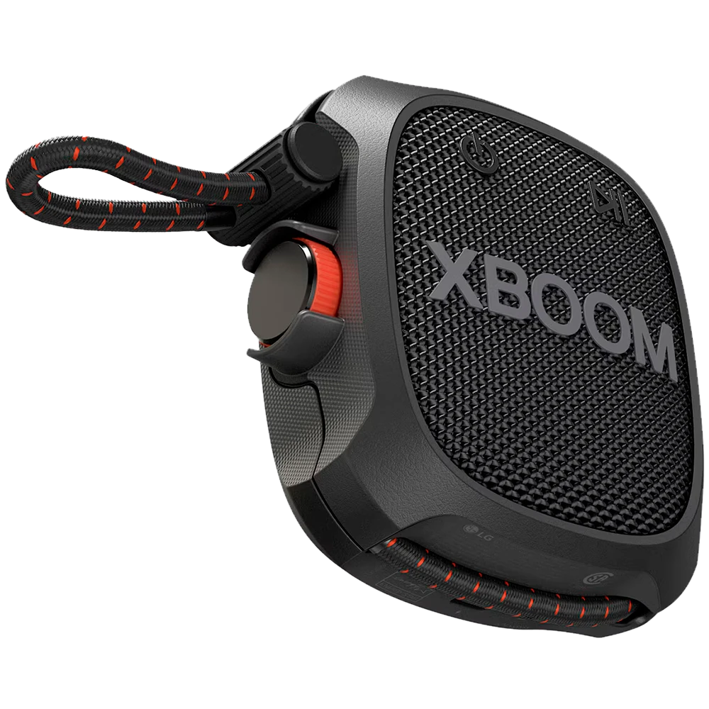 El parlante XBOOM XG2T de LG es un equipo portátil pensado para acompañarte donde vayas. Gracias a su diseño resistente (certificación militar MIL-STD-810H) y protección IP67 contra agua y polvo, este parlante ofrece sonido de calidad, larga duración de batería y versatilidad para usarlo al aire libre o en casa.