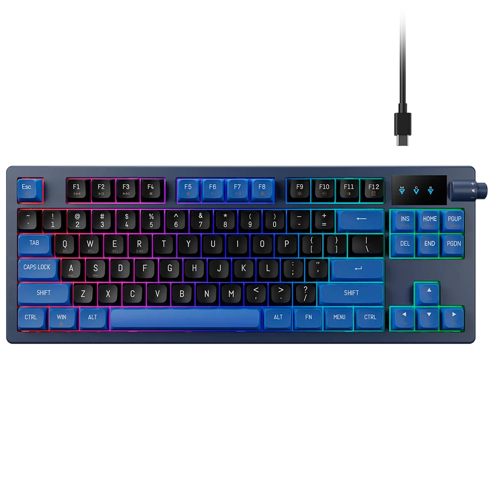 • Formato 75% Compacto: Mantiene las teclas de función (F1-F12) y las flechas de dirección en un cuerpo más pequeño que un teclado estándar, similar a un diseño TKL pero más optimizado.